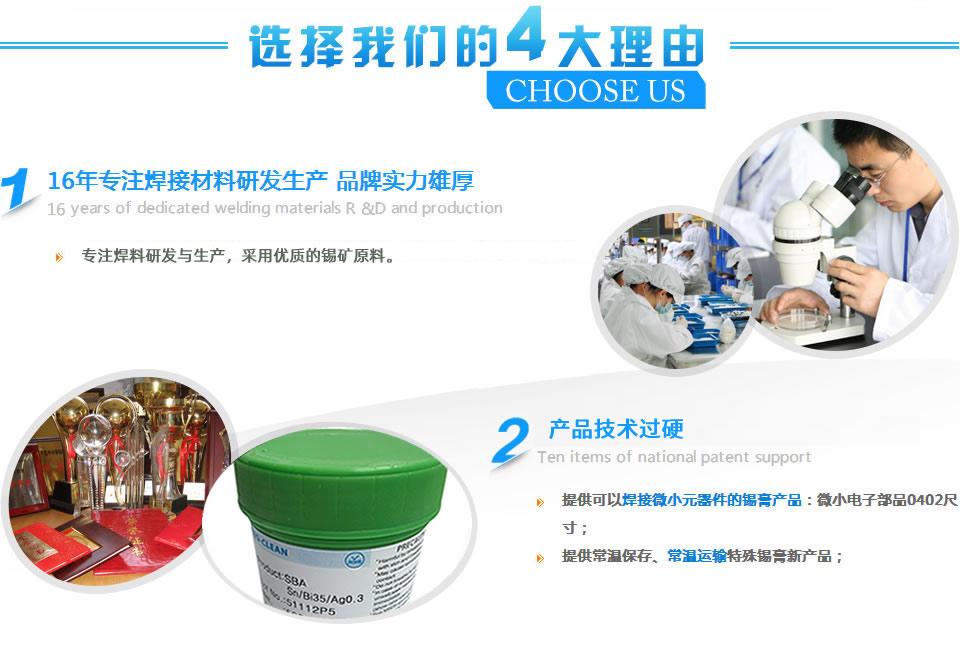 江蘇博藍(lán)錫威金屬科技有限公司是一家集研發(fā),生產(chǎn)及銷售為一體新能源公司,主要經(jīng)營:錫膏、焊錫片、焊錫絲、焊錫條、紅膠、日本千住確信愛法電子輔料系列產(chǎn)品。 采用全自動化的生產(chǎn)設(shè)備檢測儀器進(jìn)行生產(chǎn)和檢驗(yàn)檢測,工程技術(shù)人員團(tuán)隊(duì)從事電子焊接材料、錫膏、助焊劑的生產(chǎn)研究已達(dá)多年,并長期得到國內(nèi)焊錫材料、錫膏、助焊劑方面的老專家的授藝和指導(dǎo)。無論是理論基礎(chǔ)、 生產(chǎn)工藝還是管理均在同行業(yè)處于較高水平。